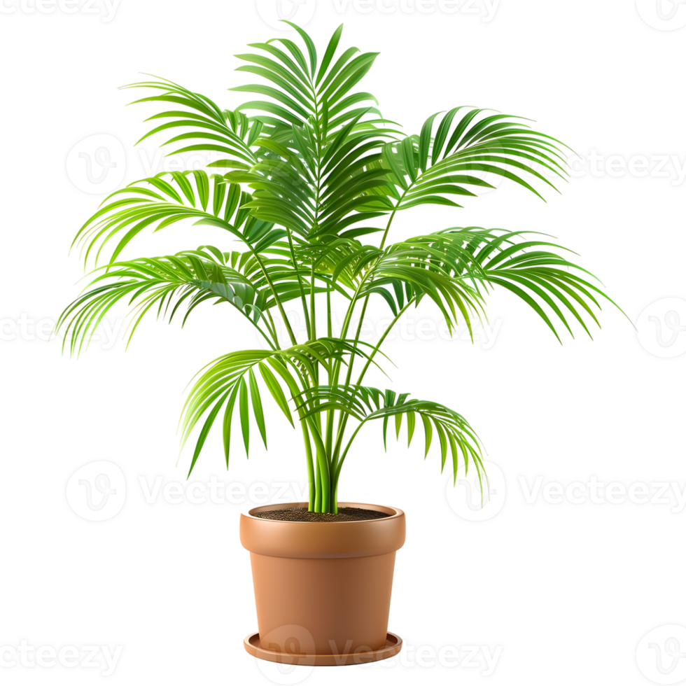 ai generato 3d interpretazione di un' verde palma albero nel un' pentola su trasparente sfondo - ai generato PNG Pro