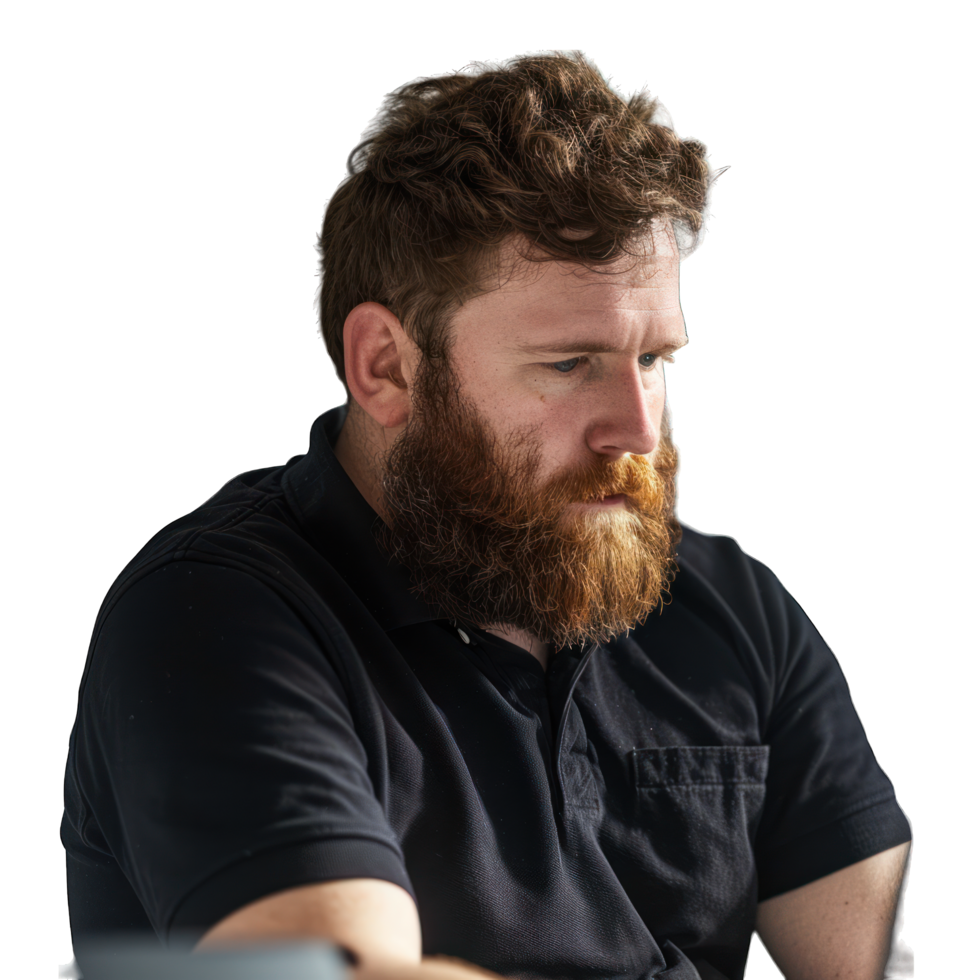 barba uomo Lavorando su il computer portatile trasparente sfondo PNG Gratuito