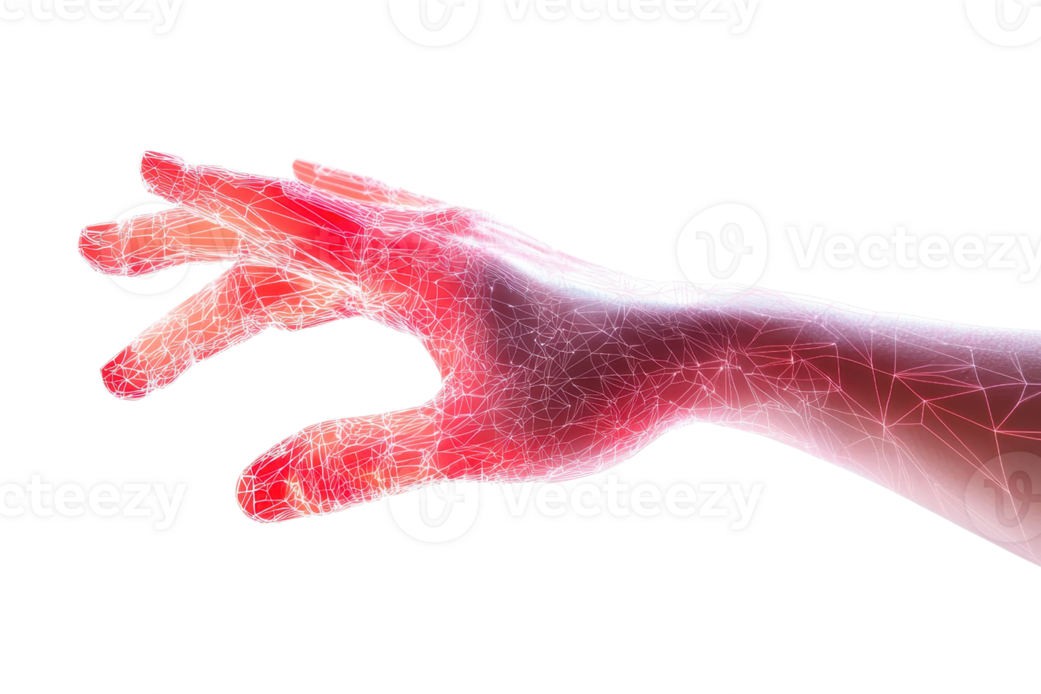 un' raggiante mano con un' Rete di Linee e nodi, simboleggiante tecnologia e connettività. PNG Pro