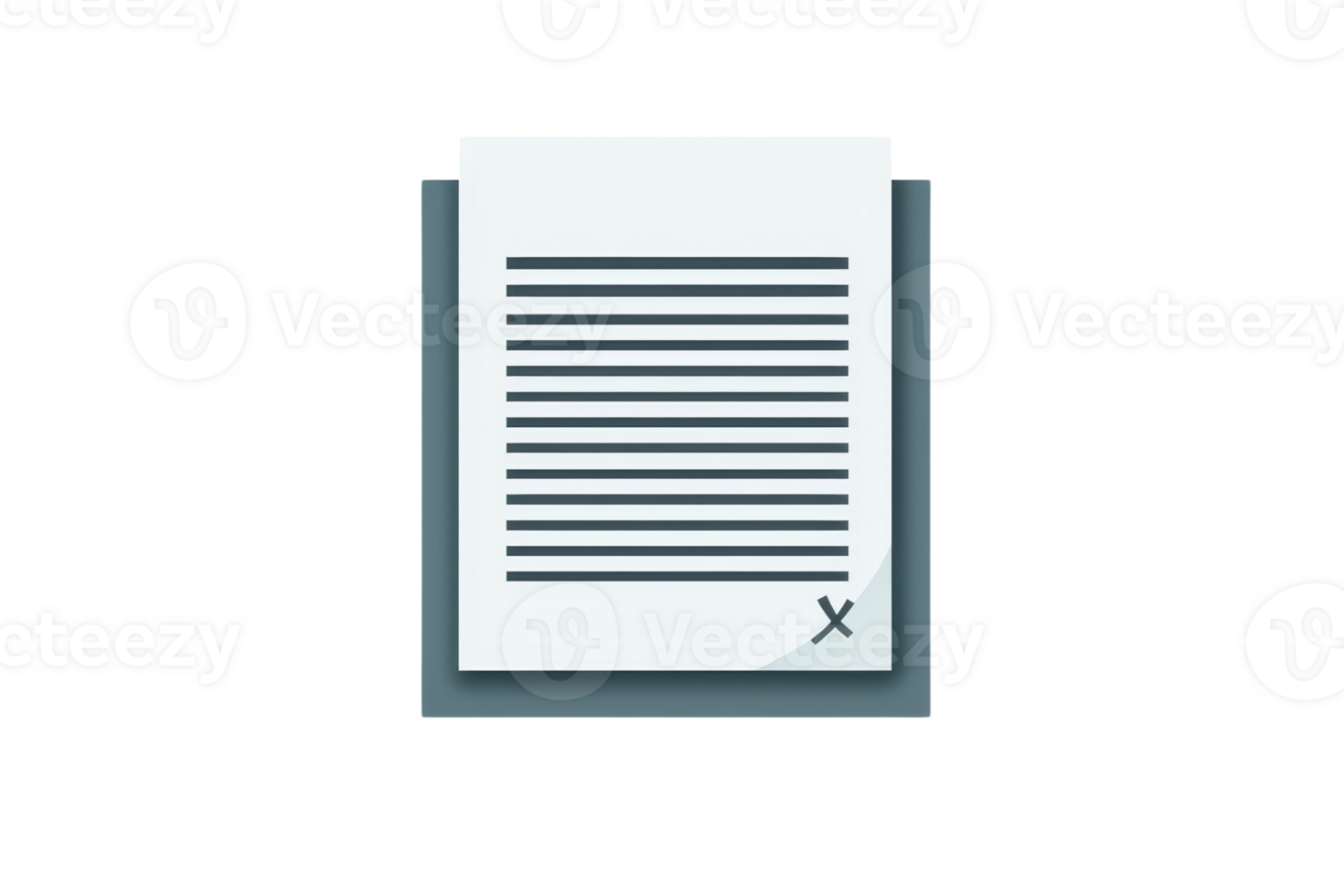 un illustrato documento con orizzontale linee, in mostra scritto contenuto, Caratteristiche un' piccolo attraversare simbolo indicando un' possibile azione o stato. PNG Pro
