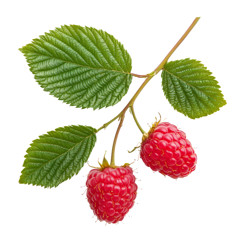 fresco lampone rami con maturo frutta isolato su un' pulito trasparente sfondo, Due lampone rami siamo isolato su un' trasparente sfondo. lampone frutta ramo trasparente sfondo png