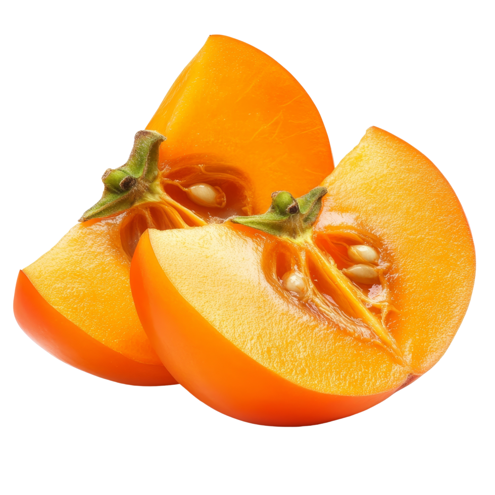 fette di maturo cachi isolato su un' trasparente sfondo, in mostra loro vivace colore e unico struttura, fetta maturo cachi isolato su trasparente sfondo PNG Gratuito