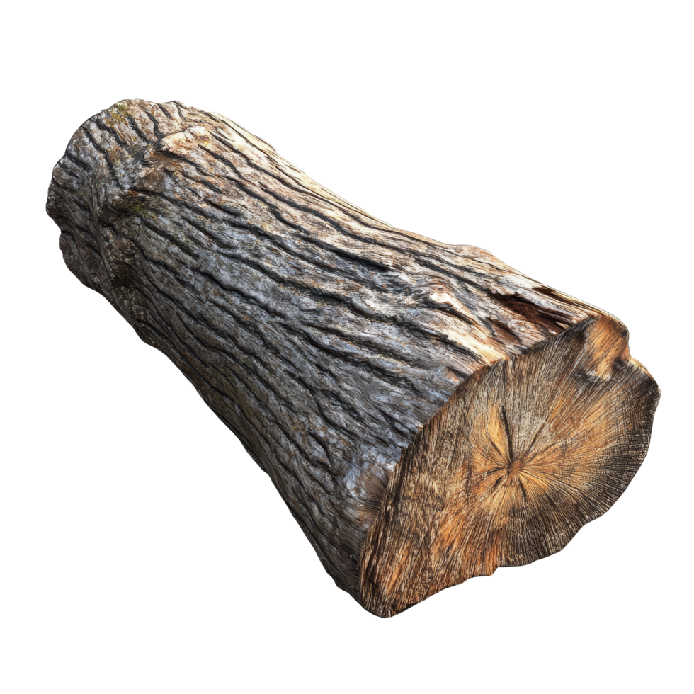 dettagliato Visualizza di un' rustico log riposo su un' trasparente superficie, in mostra suo naturale struttura e cereali, log legna su trasparente file di sfondo png