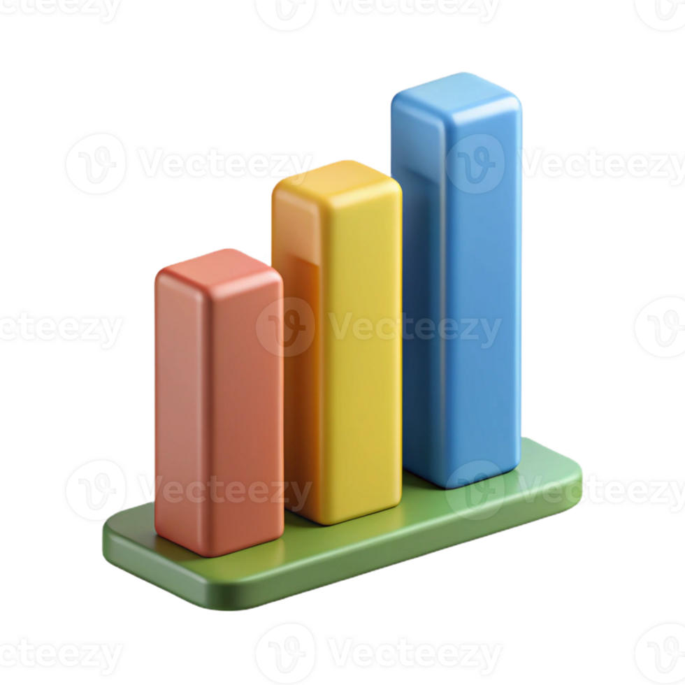 degno di nota acclamato verticale bar grafico con tre barre, croccante bordi, solido colori. minimo, con scalabile design. PNG Pro