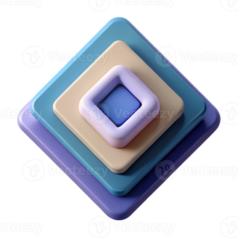 degno di nota quintessenza astratto composizione di tre concentrico piazze. piatto colore, pulito linee, con scalabile design. PNG Pro