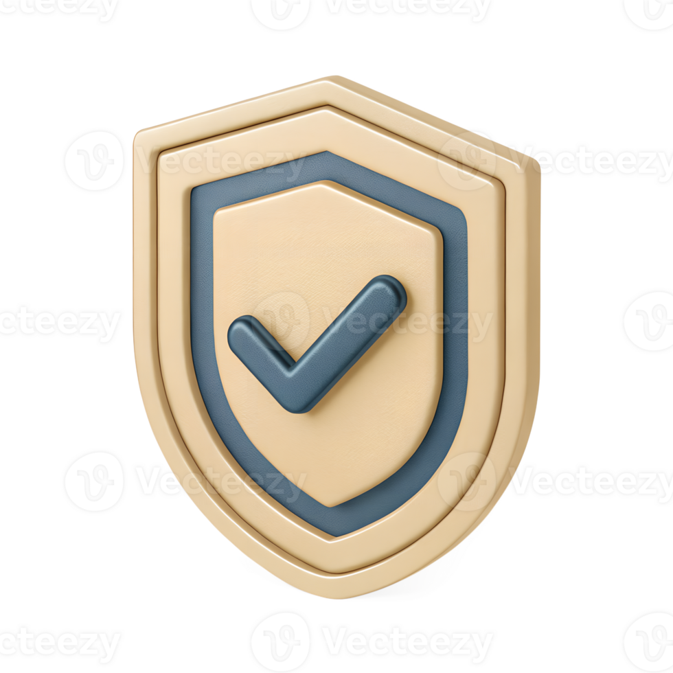 un' stile 3d icona di un' scudo con un' segno di spunta, centrato, minimo design PNG Pro