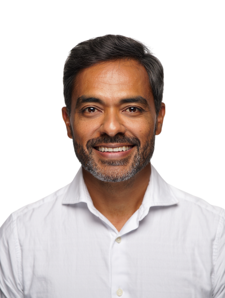 un' sorridente ispanico uomo con un' barba è isolato su trasparente sfondo, indossare un' bianca bottone giù camicia, guardare direttamente a il telecamera con un' amichevole e genuino espressione png