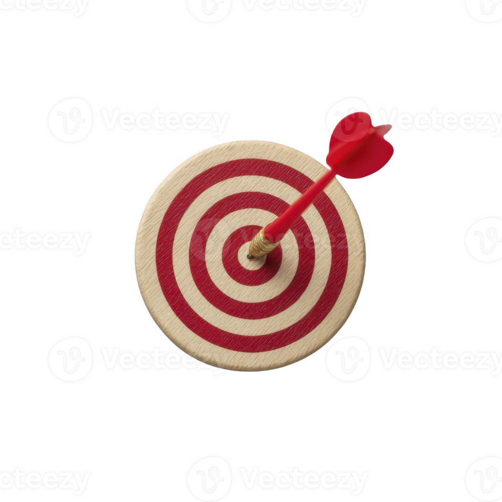 rosso dardo è perfettamente colpire centro di circolare obbiettivo, simboleggiante precisione e successo. bersaglio Caratteristiche concentrico rosso e bianca cerchi, sottolineando precisione e messa a fuoco PNG Pro