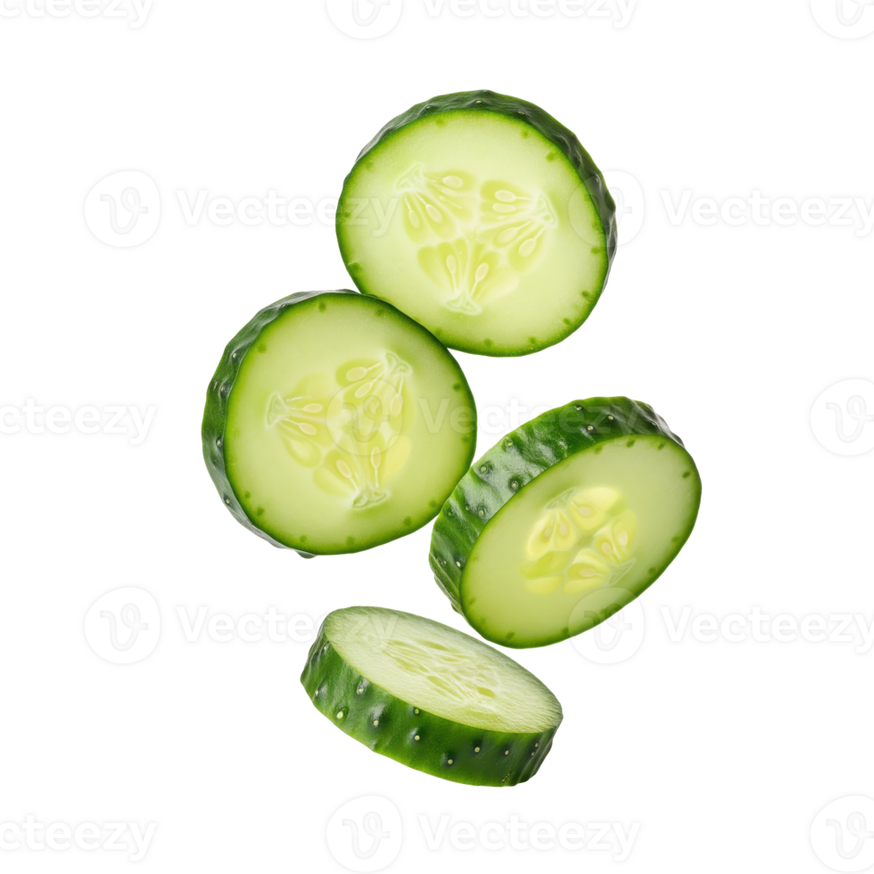 un' vicino su Visualizza di quattro cetriolo fette con un' trasparente sfondo mostrando loro textures e colore PNG Pro