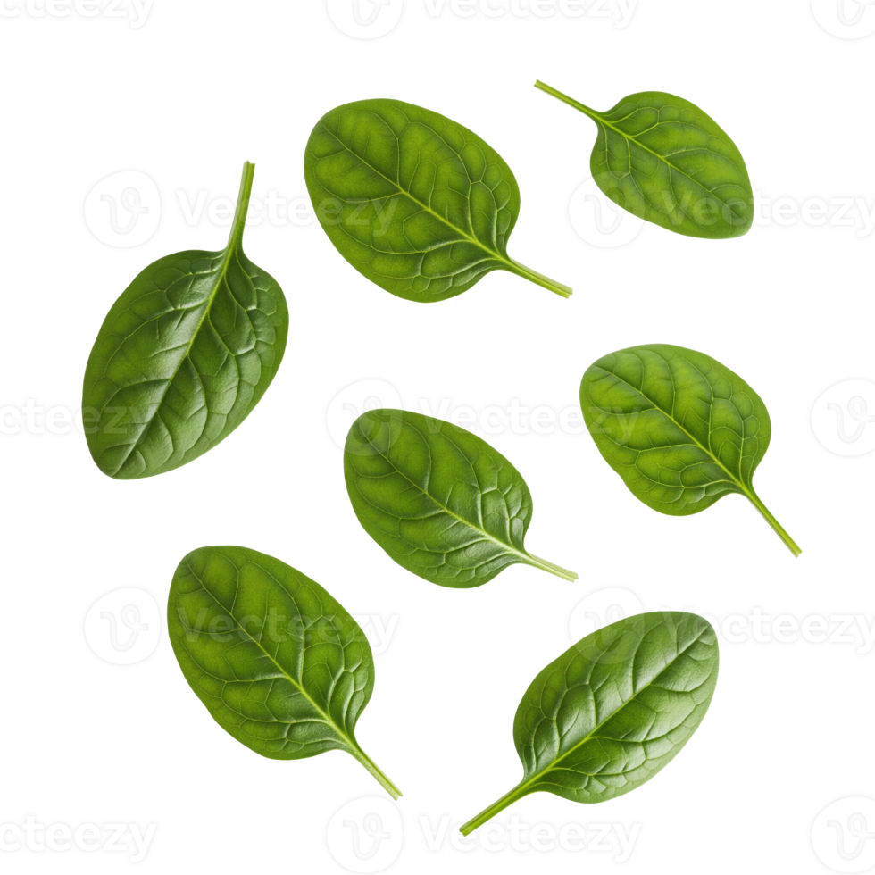 sparpagliato fresco spinaci le foglie su un' trasparente sfondo la creazione di un' semplice composizione Visualizza PNG Pro