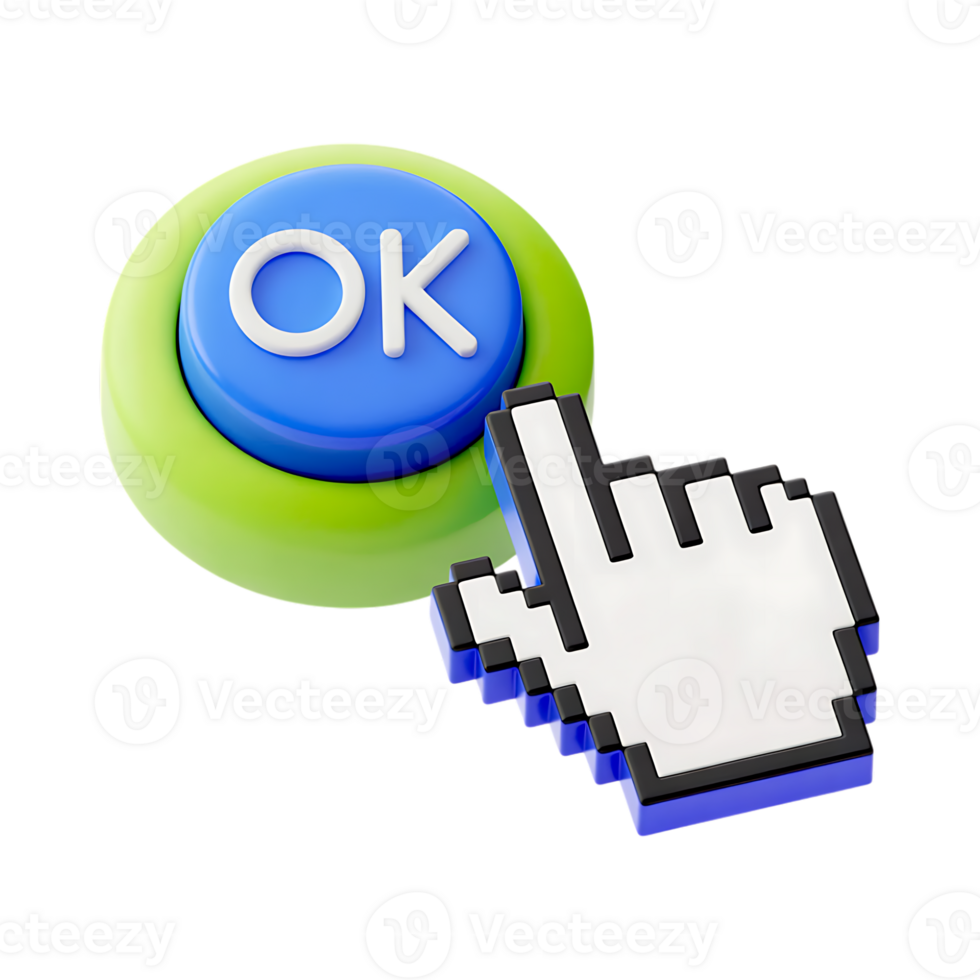 digitale ok pulsante click con pixelated topo pointer isolato su trasparente sfondo PNG Pro