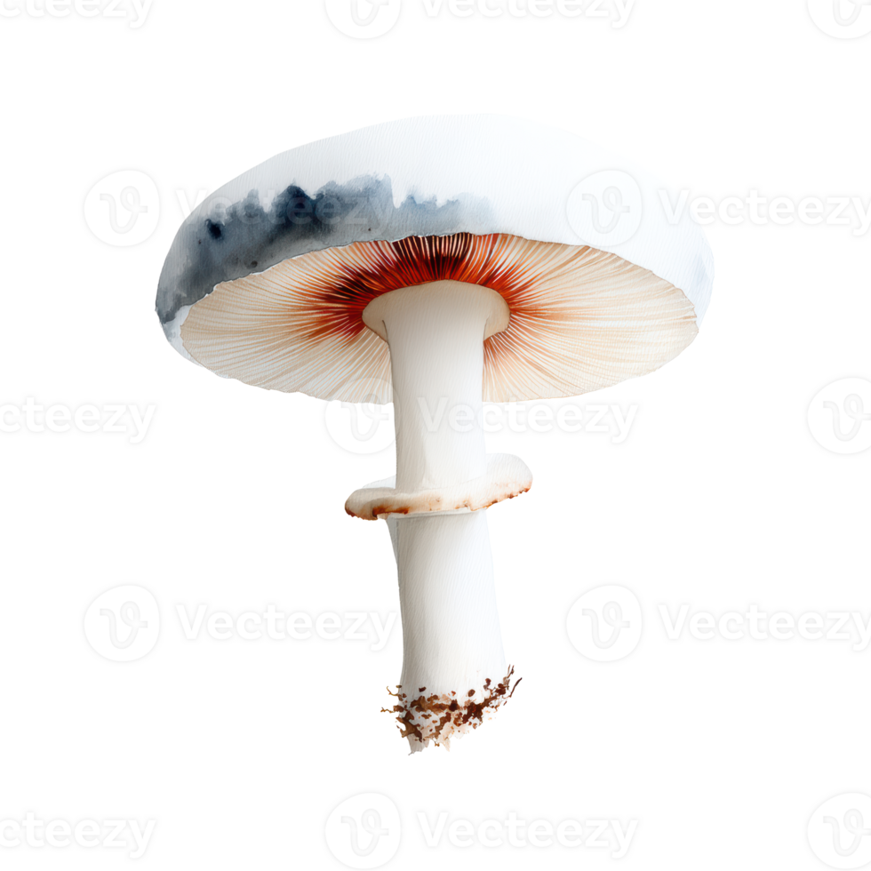 acquerello un' dettagliato Visualizza di un' bianca fungo con rosso branchie, isolato su trasparente sfondo, in mostra suo unico struttura e struttura PNG Pro