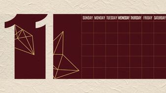 Monthly Calendar with Divine Damson Red Color Theme Modello Pro
