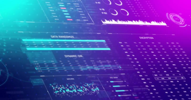 Rendering 3d interfaccia display head up futuristico concetto cyber, con effetto profondità di campo ridotta, scuro e grano elaborati Video Pro