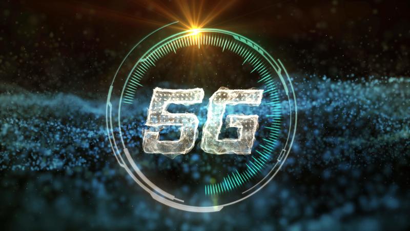 Comunicazione 5g hud con sfondo di movimento di trasferimento dati di rete oro astratta Video Gratuito