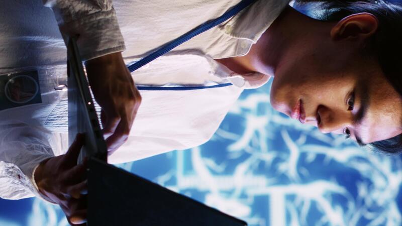 verticale video esso professionista lavori con artificiale intelligenza informatizzato modello simulando umano cervello. Tech esperto ispettore supervisione ai macchina apprendimento algoritmi modello riconoscimento Video Pro