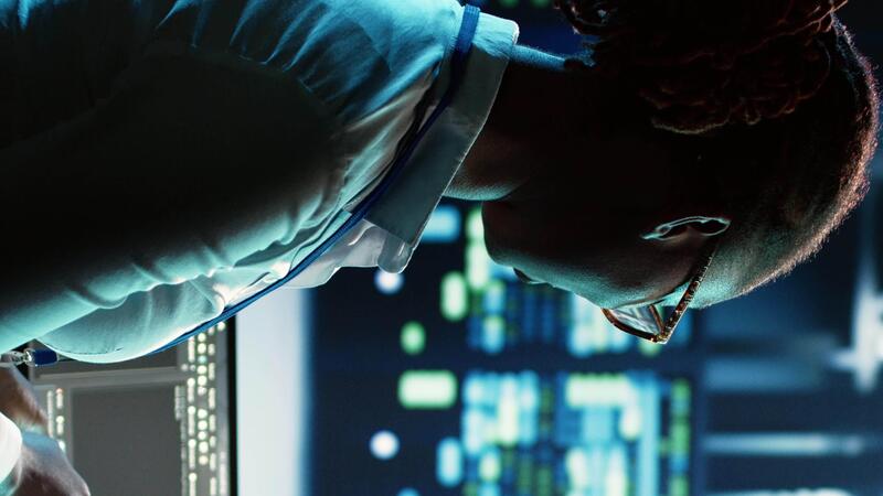 verticale video abile africano americano tecnico programmazione script su tavoletta, in aggiornamento dati centro infrastruttura progettato per ospitare componibile server, networking attrezzatura e Conservazione array Video Pro