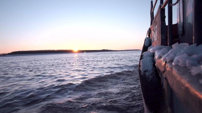 Visualizza a partire dal il barca. clip. un' barca con un' piccolo quantità di neve su esso galleggiante inoltrare su quale il onde di il fiume rompere a parte e a partire dal lontano voi può vedere il estroverso luminosa sole e il foresta. Video Pro