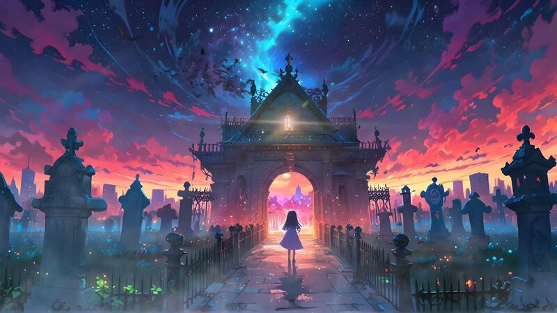 un' ciottolo sentiero venti suo modo attraverso il cimitero, principale in direzione un' mille dollari castello nel il sfondo. Video Pro