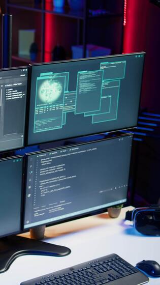 verticale Linee di codice visualizzato su computer monitor Usato di criminale informatico furto sensibile informazione. virus script in esecuzione su pc infettando Rete sistemi, rottura Le password Video Pro