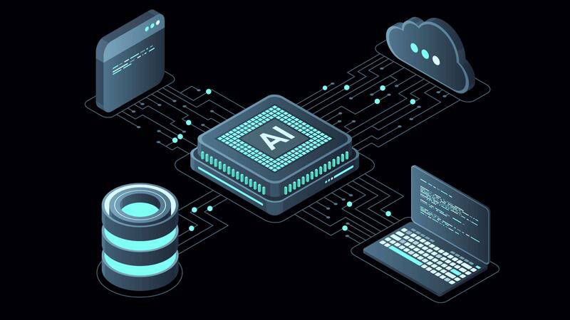 isometrico artificiale intelligenza patata fritta animazione. artificiale intelligenza server. futuristico microchip processore. isometrico nube informatica. trasparente sfondo con alfa canale Video Gratuito