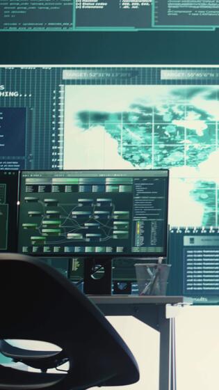 verticale informatica sicurezza monitoraggio camera con alto Tech attrezzatura. governativo messa a fuoco su informatica operazioni, informatica sorveglianza, e digitale minacce protezione nel un vuoto comando spazio di lavoro. telecamera b. Video Pro
