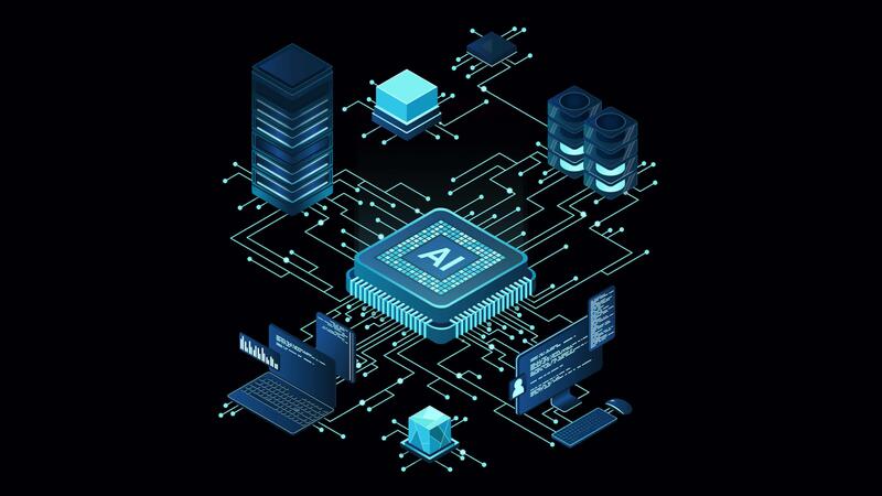 isometrico artificiale intelligenza patata fritta animazione. artificiale intelligenza server. futuristico microchip processore. isometrico nube informatica. trasparente sfondo con alfa canale Video Pro