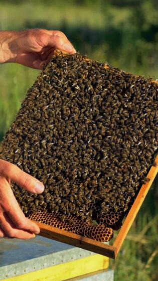 mano di apicoltore è Lavorando con api e alveari su il apiario. api su favi. montatura di un' ape alveare verticale Video Gratuito