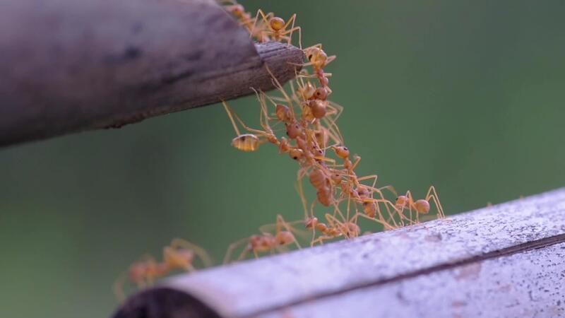 rosso formiche uso loro corpi per modulo un' zattera per scalata per un altro tronco d'albero. Video Pro