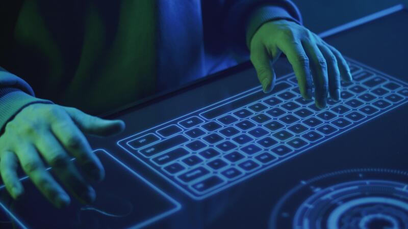 avvicinamento di un' di hacker mani digitando testo su un' toccare tastiera Video Pro