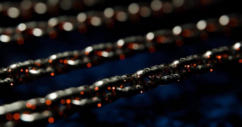 futuristico blockchain concetto con raggiante blu bokeh e catena link Video Pro