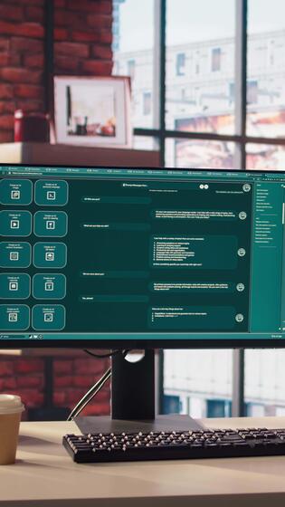 ai lm chatbot segreteria utente richiede utilizzando predittivo tecnologia nel casa ufficio. computer impostare nel appartamento spazio di lavoro utilizzando grande linguaggio modello programma con artificiale intelligenza Video Pro