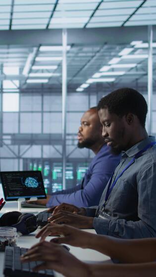 verticale computer scienziati nel dati centro implementazione ai predittivo Manutenzione sistemi. server azienda agricola dipendenti utilizzando artificiale intelligenza per identificare hardware fallimenti impatto operazioni, telecamera un' Video Pro