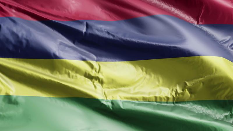 mauritius bandiera sventola sul ciclo del vento. banner mavrik che ondeggiano nella brezza. sfondo di riempimento completo. Ciclo di 10 secondi. Video Pro