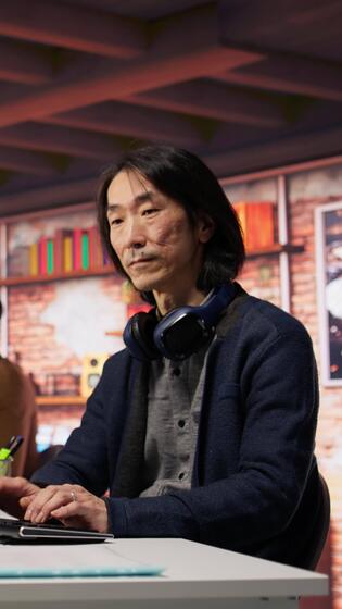 verticale ai avviare anziano programmatore supervisione in profondità apprendimento applicazione, pensiero Come per Ottimizzare Software. asiatico artificiale intelligenza Tech avventurarsi ingegnere utilizzando pc per fix codice bug, telecamera B Video Pro