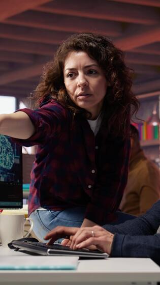 verticale ai avviare ingegnere chiede domande per squadra capo prima di partenza implementazione macchina apprendimento. artificiale intelligenza Tech avventurarsi dipendente richieste Aiuto a partire dal manager per fix codice bug, telecamera B Video Pro