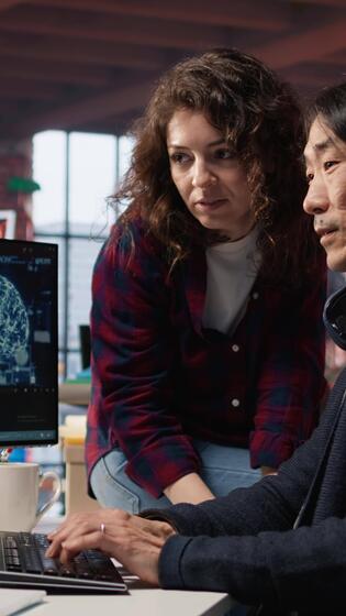 verticale collaboratori collaboratore nel ai Tech agenzia fornire Software sviluppo Servizi. lavoro di gruppo avviare ufficio colleghi utilizzando artificiale intelligenza per razionalizzare codifica processi, telecamera un' Video Pro