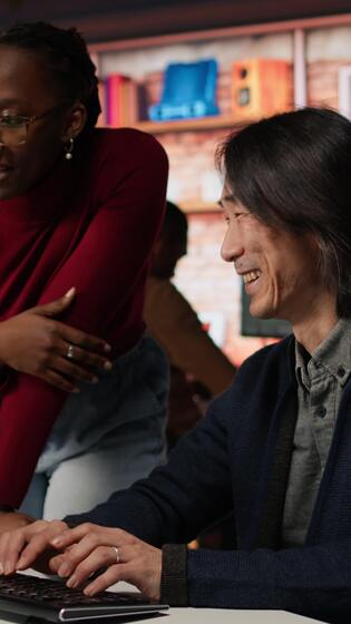 verticale programmatore In arrivo per ai avviare ufficio cto manager scrivania per richiesta aiuto. dipendente chiede domande per anziano squadra capo nel artificiale intelligenza Software sviluppo agenzia, telecamera un' Video Pro