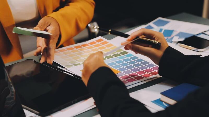 un' attività commerciale persona è utilizzando un' colore swatch per scegliere un' colore Video Gratuito