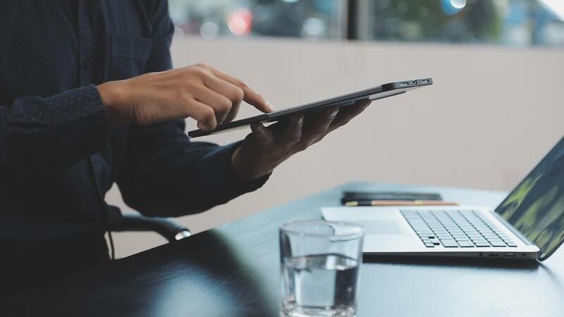 un' persona è utilizzando un' tavoletta computer mentre seduta a un' scrivania Video Gratuito