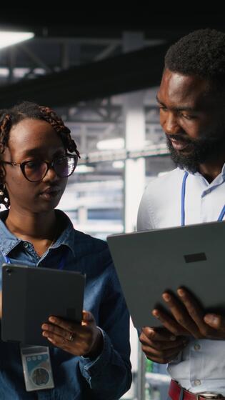 verticale dati centro amministratori in esecuzione diagnostica su attrezzatura utilizzando sistema monitoraggio utensili per identificare errori, fare brainstorming. esso esperti opera insieme per impedire fallimento e minimizzare tempo di inattività, telecamera B Video Pro