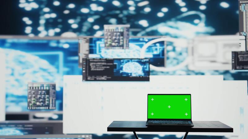 il computer portatile in esecuzione isolato modello schermo Il prossimo per ai neurale reti sistema, Usato per praticante in profondità apprendimento e nube informatica. Tech implementazione artificiale intelligenza cervello. telecamera b. Video Pro