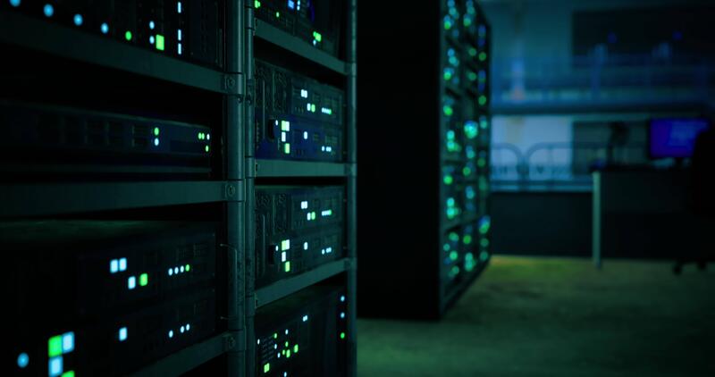 cgi complesso server camera con illuminato hardware e alto Tech atmosfera Video Pro