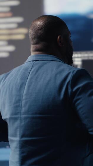 verticale nero ingegnere esplora algoritmo design e binario codice con alto Tech ai Strumenti, programmazione codice per automazione e innovazione. connessione per esso sistemi e il futuristico mondo. telecamera b. Video Pro