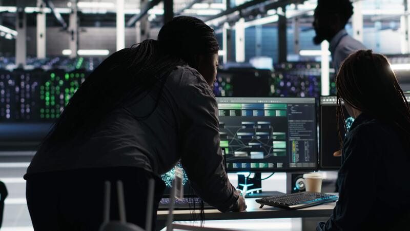 dati centro lavoro di gruppo colleghi uso nodo albero programma per identificare attrezzatura prestazione questioni. server centro ingegneria squadra collaboratori revisione dati analisi grafico per minimizzare fallimenti, telecamera B Video Pro