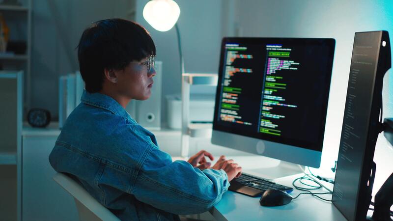 sviluppatore focalizzata su codice durante programmazione e debug processi Video Gratuito