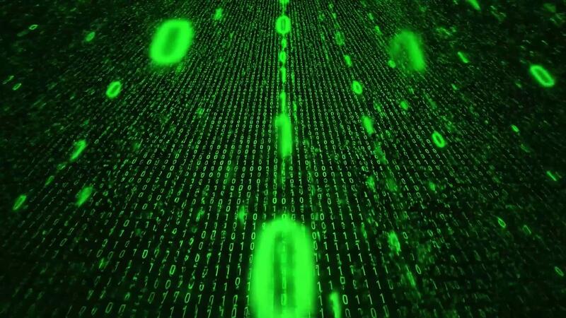 un' buio sfondo con un' griglia di verde binario codice streaming giù nel un' digitale pioggia effetto con variando luminosità e taglia. Video Pro
