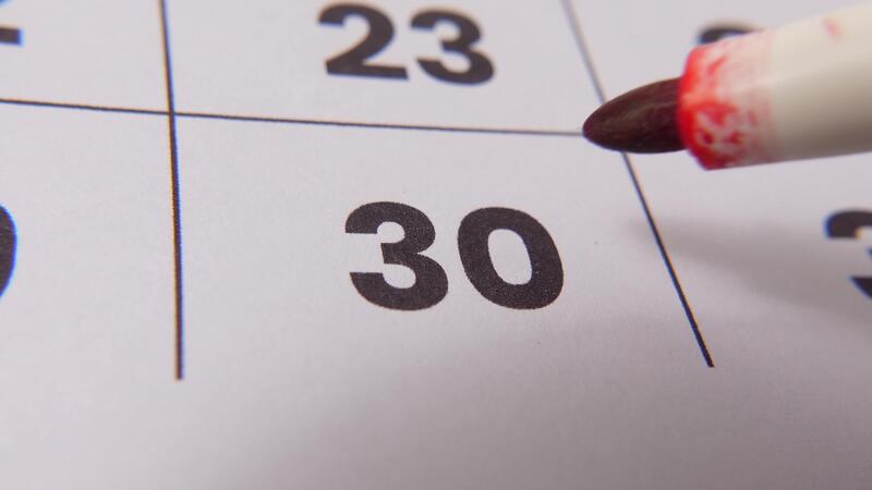evidenziazione Data numero 30 su un' calendario, con un' grassetto rosso attraversare marchio sottolineando un importante promemoria o in programma evento. Video Pro