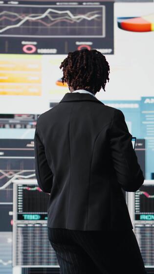 verticale attività commerciale professionale utilizzando il computer portatile per revisione prestazione cruscotti metrica durante aziendale strategia pianificazione sessione. manager valutare annuale rapporto dati utilizzando taccuino Software, telecamera un' Video Pro