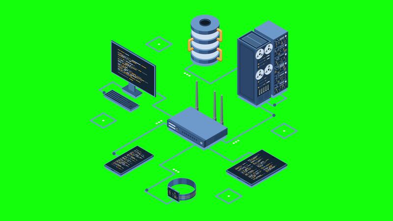 isometrico Rete router animazione. isometrico Rete concetto con router, computer, smartphone, e server connessione. isometrico tecnologia. 4k animato nel isometrico stile Video Gratuito